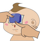 2、局部壓迫止血:兒童最常見(約百分之九十以上)流鼻血的位置是在鼻孔內側約一、兩公分處的鼻中膈黏膜上,因為靠近前鼻孔,所以鼻出血時可先行使用最方便的局部壓迫止血,其方法是 -- 用手指由鼻子外面壓迫出血側的鼻前部(軟鼻子處),似一般以手夾鼻子的做法,直接壓迫約五至十分鐘。大部份病人都可以此種方法簡單地來止血。而另一側未流血的鼻孔仍可通暢地呼吸著。