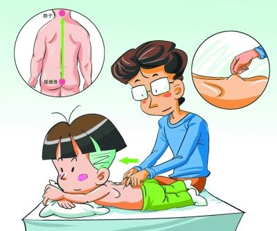 1、縱擦肺俞:肺俞穴在肩胛骨的內側緣,第3胸椎棘突下,左右旁開二指寬處(二指寬指該小兒的食中二指寬度)。用食指和中指分別置於兩肺俞穴處,進行上下方向的往返推擦,見皮膚潮紅,透熱為佳。