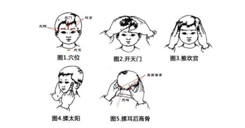 開天門、推坎宮、揉太陽、揉耳後高骨。