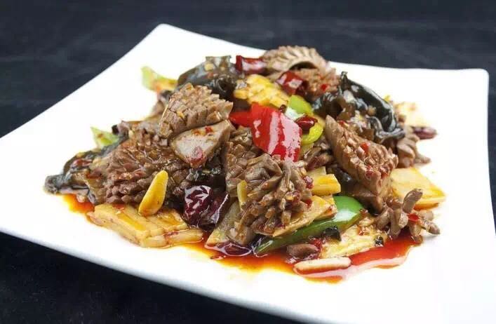 【製作】杜仲清水煎濃汁50毫升,加澱粉、紹酒、味精、醬油、鹽、白砂糖,兌成芡汁分成三份備用。豬腰片去腰臊筋膜,切成腰花,浸人一份芡汁內,蔥、薑、蒜洗淨切段、片待用。炒鍋大火燒熱,倒入植物油燒至八成熱,放人花椒,待香味出來,投入腰花、蔥、薑、蒜快速炒散加入芡汁,繼續翻炒幾分鐘,加入另一份芡汁和醋翻炒均勻,起鍋即成。