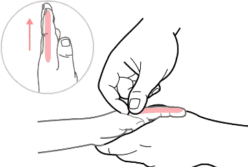 手法:用一只手托住孩子的手掌,暴露桡侧缘,然后用另一只手的拇指螺纹面从孩子手掌虎口推向食指指尖。